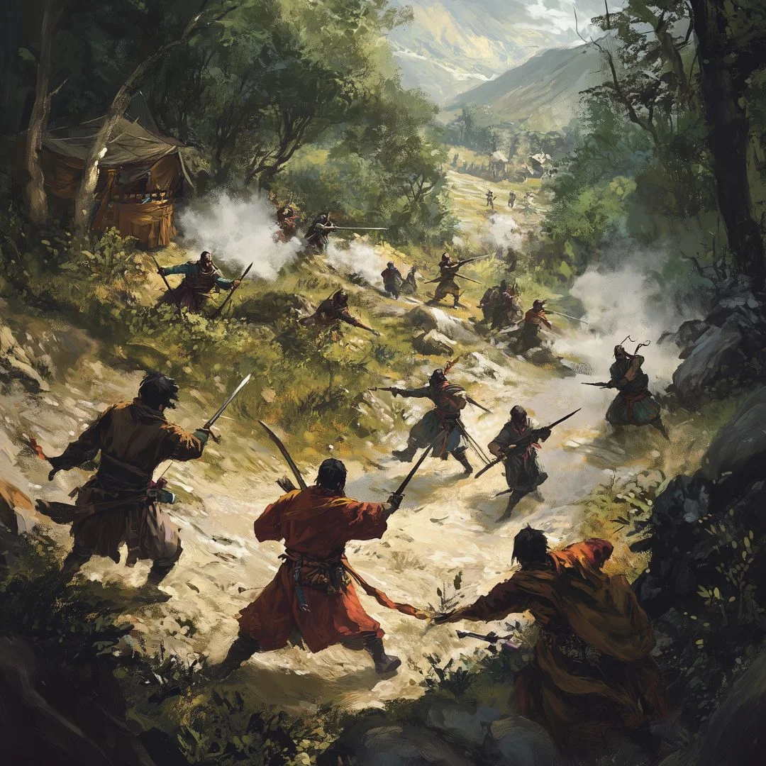 When the monks arrived, the bandits were trapped - cornered between the guards and the mountainside.